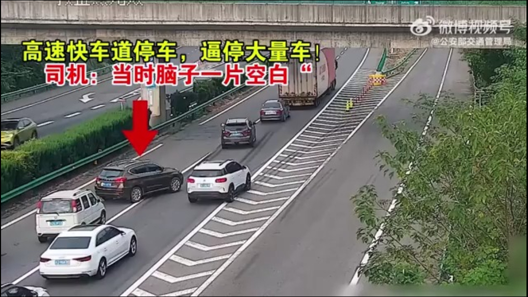 高速快车道停车逼停大量车,司机:“当时脑子一片空白”