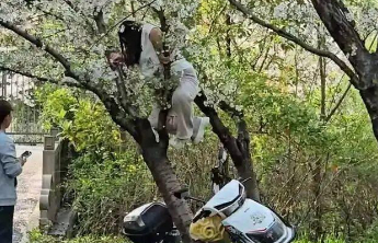 上海一女子爬树拍照,压倒整棵樱花树!安保:“一天劝阻好几十次,屡教不改”