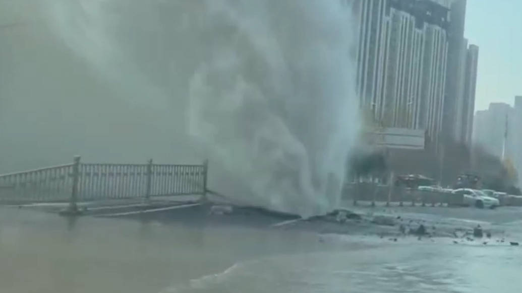 情报站|济南奥体中路与花园路口暖气管道破裂,水流喷射注意安全