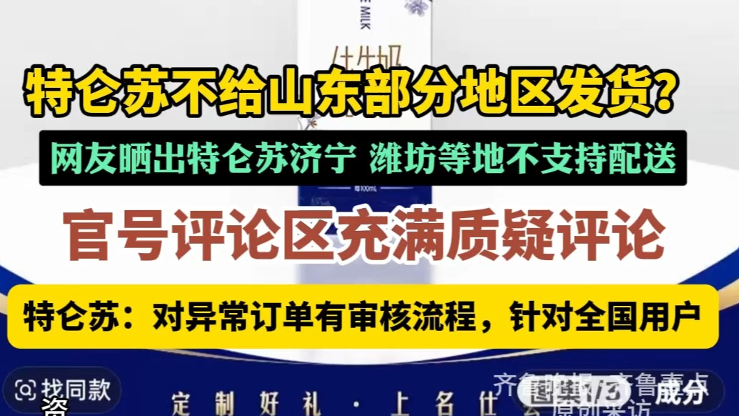 果然视频|特仑苏不给山东部分地区发货?官方:针对全国异常账户