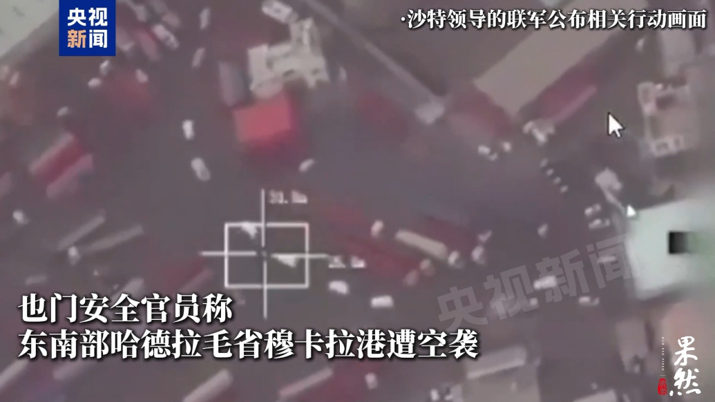 果然视频·看天下|沙特联军空袭也门穆卡拉港,附近燃起大火