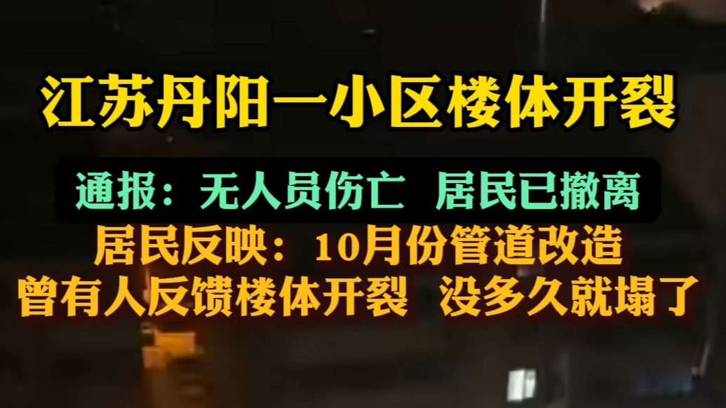 果然视频|江苏丹阳一居民楼深夜开裂,居民曾反映管道改造致沉降