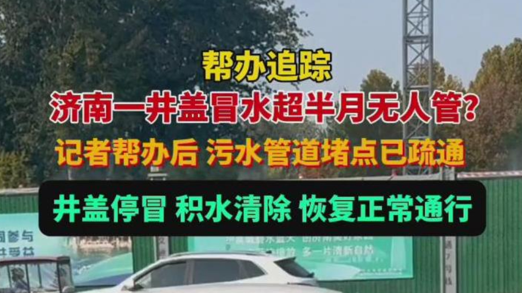 帮办追踪|济南花园路冒水井盖已疏通,道路恢复正常通行