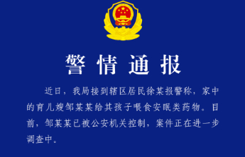 浙江金华警方:育儿嫂邹某某给孩子喂食安眠类药物,已被控制