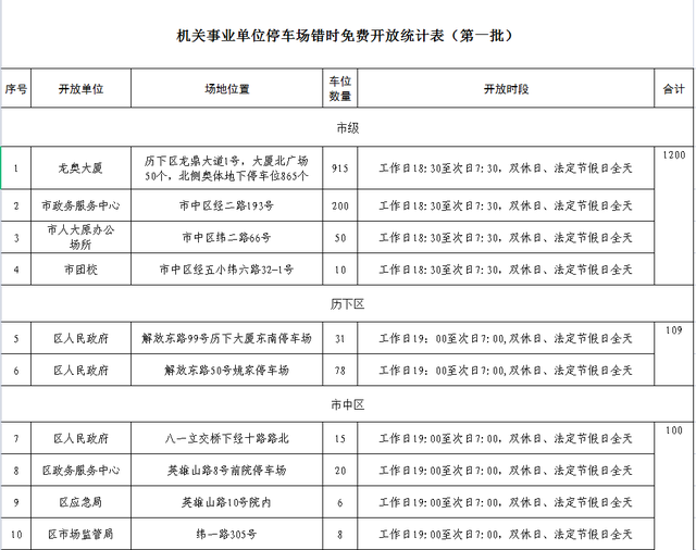 前期,济南市委改革办汇通有关部门开展了大量调研工作,多次召开专题会议进行研究部署,2021年9月19日,联合下发了《关于做好机关事业单位内部停车场向社会错时免费开放工作的通知》,按照“成熟一批、开放一批、应放尽放”的原则,将市、区县(功能区)机关事业单位内部停车场,在满足自用且不涉及安全问题的情况下,在空闲时段分批向社会车辆(7座及以下小型非营运载客汽车)免费开放。