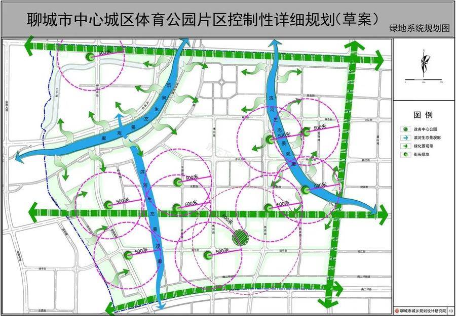 片区内规划徒骇河滨河生态景观廊、班滑河滨河生态景观廊、聊位河滨河生态景观廊三条滨河景观廊。以及沿湖南路、光岳路、松桂大街、南二环路等四条绿化景观带。