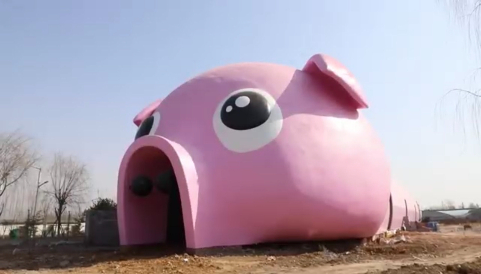 如今,这座以猪身为设计元素的“猪猪乐园”外部雏形已经建好,粉色的猪身十分显眼,内部的冷库装置正在调试,“我们都把它叫做‘粉红猪小妹’,总共占地1200平方米,有大大小小四个冷库。”说起“猪猪乐园”项目,王元虎满眼期待。