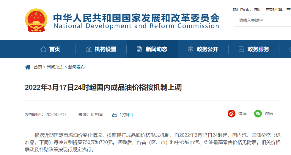 据国家发改委网站消息,自今日24时起,国内成品油价格按机制上调。就此,记者采访了国家发展改革委有关负责同志。