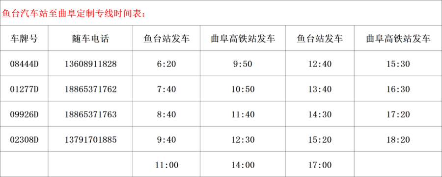 鱼台汽车站 6:30、7:50 、