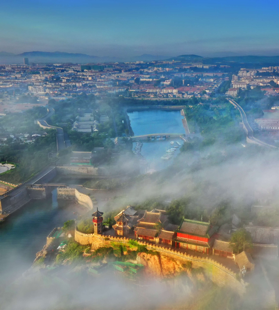 蓬莱阁上的平流雾(蓬莱文旅供图)