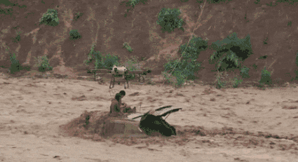 在生死攸关的时刻,男子本能地用自己的后背挡住洪水,将未婚妻护在怀中。