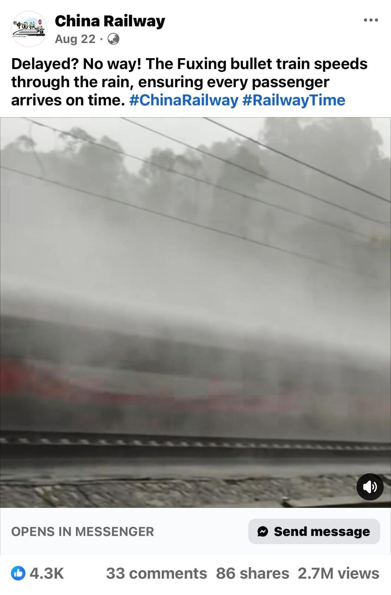近期,复兴号列车在雨中疾驰的画面引发海内外网友惊叹。