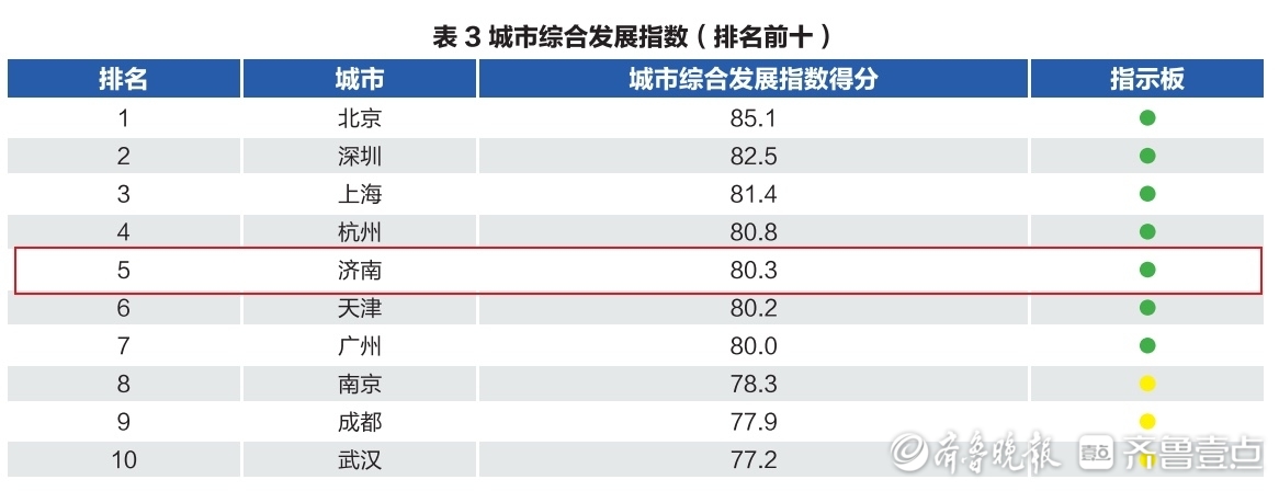在“创新城市”测度中,济南同样表现优异,排名第十。
