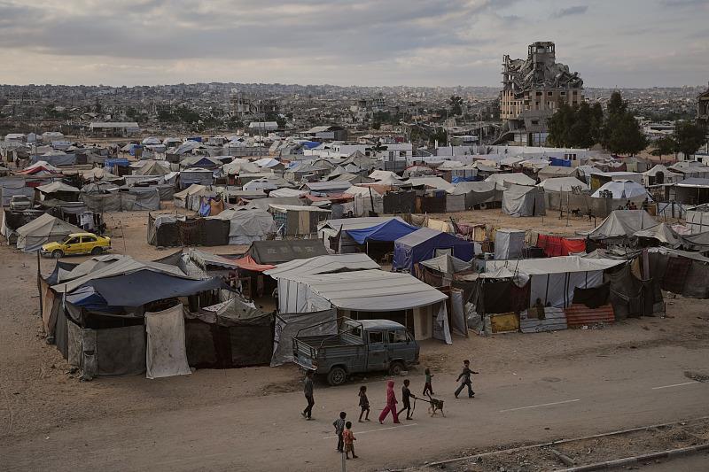 当地时间10月18日,加沙地带汗尤尼斯,一个流离失所的巴勒斯坦人帐篷营地。