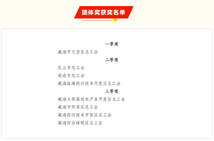近日,威海市第四届工会财务人员业务技能竞赛成功举办。本届竞赛由市总工会、市财政局联合举办,来自全市8支代表队的158名选手同台竞技,经过激烈角逐赛出团体一等奖1个、二等奖3个、三等奖4个;个人一等奖5名、二等奖10名、三等奖21名、优秀奖30名。威海市文登区总工会获得团体一等奖,孙淑君、段栋、胡国彩、王甜甜、田华获得个人一等奖。
