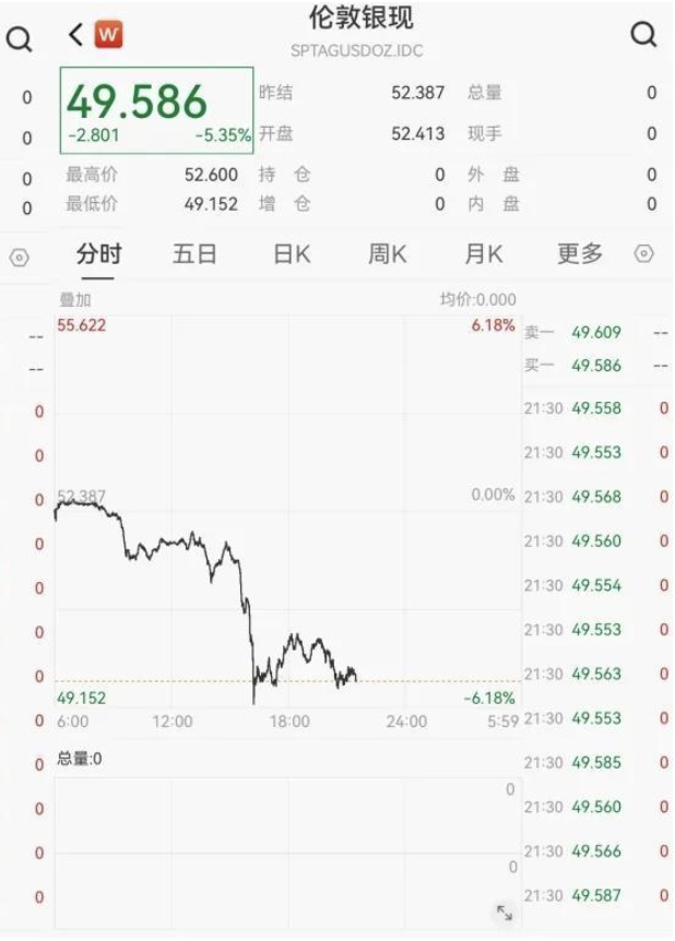 之前呼声甚至高过黄金的现货白银也同步陷入暴跌潮,