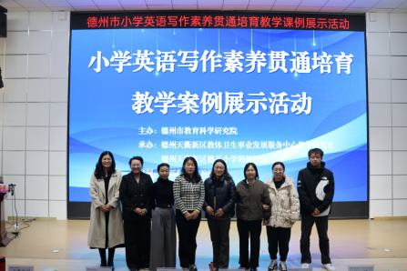 本次活动邀请了德州市教科院小学英语教研员王艳,参选县(市、区)小学英语教研员及骨干教师代表,德开小学全体英语教师参与。活动以多节写作素养教学展示课例和会议总结为主要内容,先后呈现六节由县市区执教教师带来的写作素养教学展示课例。