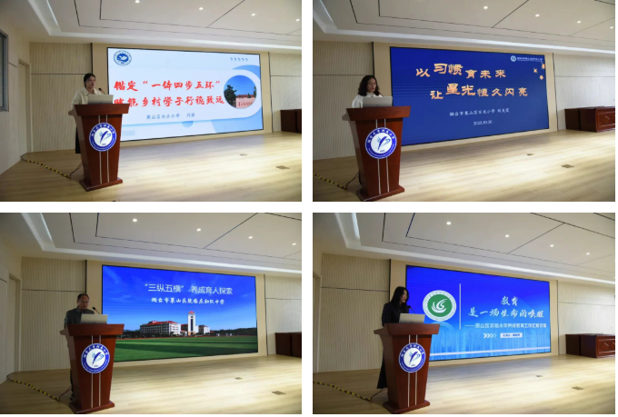 观摩结束后,与会人员移步报告厅,进入典型经验交流环节。烟台大学附属小学、实验小学、万光小学、第九小学、冶头小学、鲁东大学莱山实验中学观海校区、院格庄初级中学七所学校作了典型发言,从不同维度分享了养成教育方面的探索与实践,为全区中小学养成教育工作的深入开展提供了有益借鉴和示范引领。