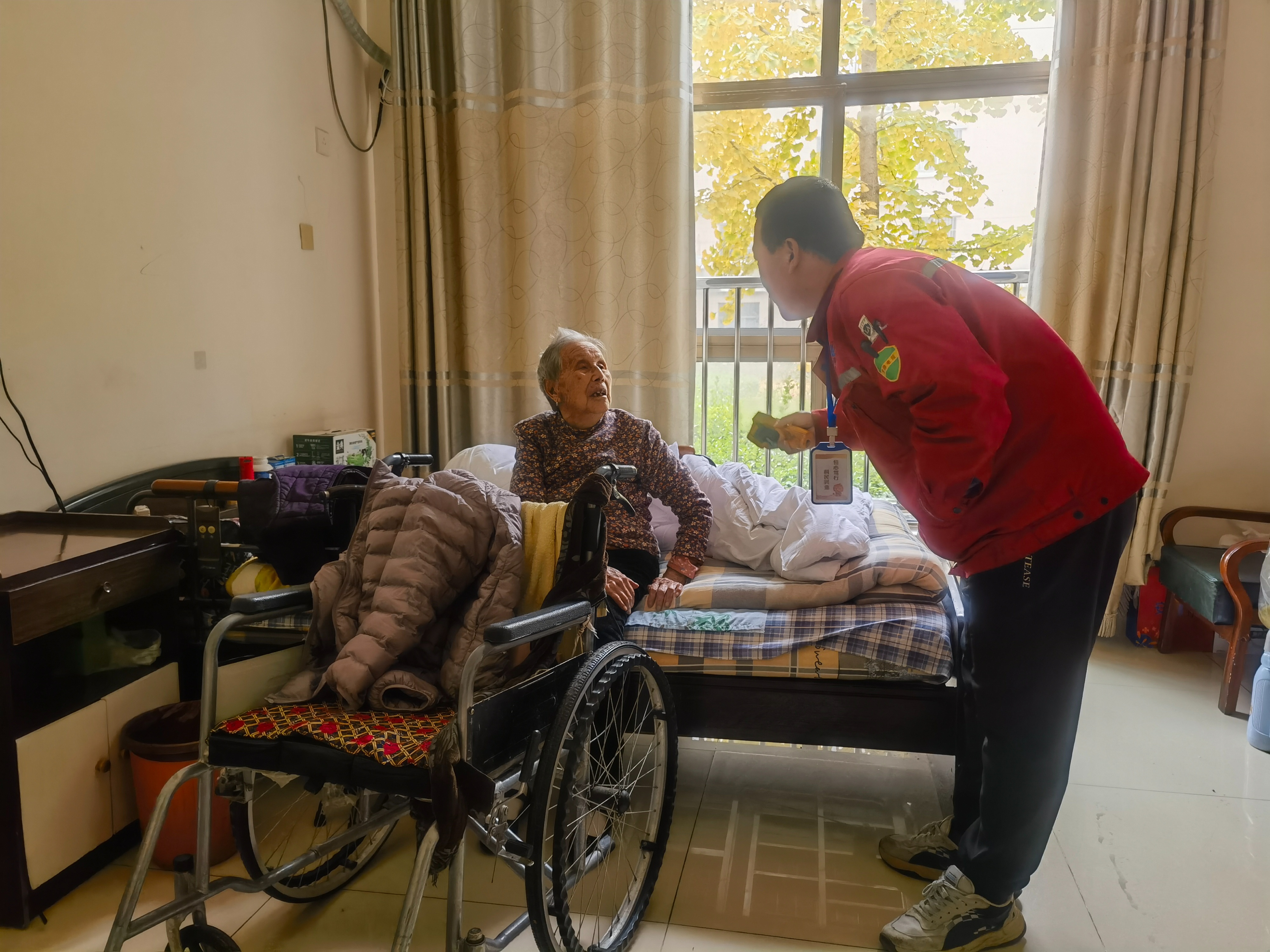 在临邑县社会福利中心,工作人员询问老人温度如何,现场实测温度也达到20.5℃。