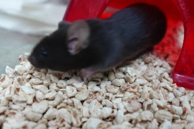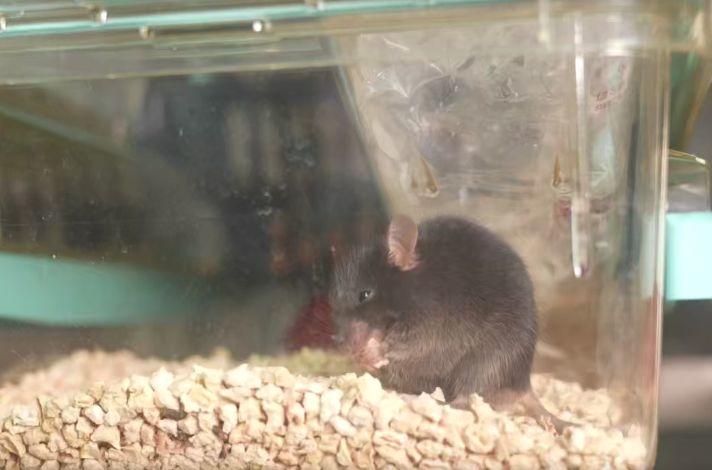 小鼠们“轮流”在实验单元内的躲避窝中休息,不时在笼壁上来回攀爬,看上去状态活泼。它们很快就找到了鼠粮的位置,并“摇头晃脑”地啃了起来。