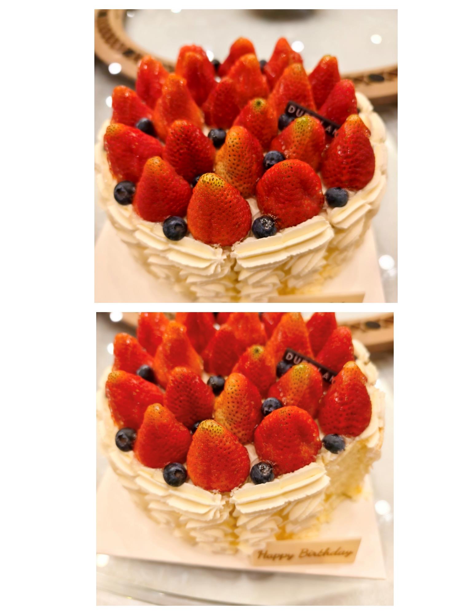 人工智能修改伪造的网购蛋糕磕碰破损图片,原图和伪造图对比