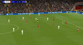 半场比赛结束之前,利物浦球员索博斯洛伊大禁区外远射,库尔图瓦单掌将皮球挡出底线,靠着门将的神勇发挥,皇马艰难带着0-0的比分回到了更衣室。
