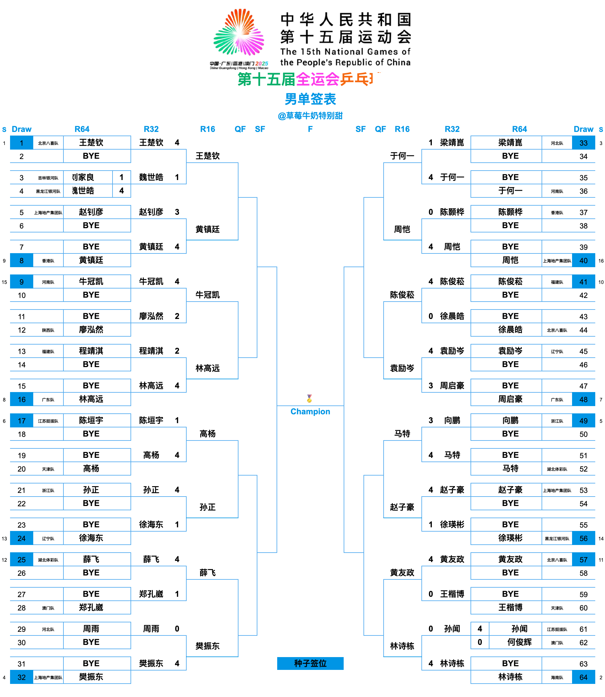 男单十六强对阵表