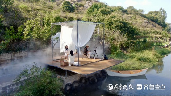 来自青岛的游客陆扬坐在溪边乌篷船上,手捧温热拿铁远眺群山,近听水声轻吟:“和城市快节奏的咖啡厅不一样,这里满是静谧悠闲,能在自然中找回内心的松弛。”