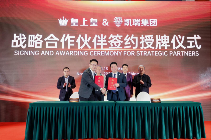 活动中,作为粤菜与鲁菜产业发展的代表企业,广州皇上皇集团与山东凯瑞商业集团共同签署战略合作协议。两家优秀企业的强强联合,绘就了南北饮食文化深度融合的崭新起点。