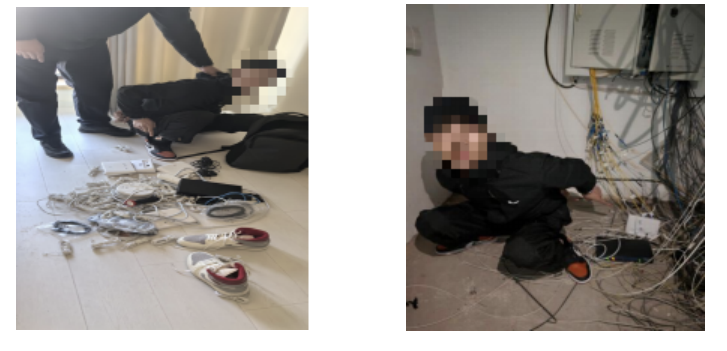 为确保精准定位涉案设备,鞍山联通抽调熟悉本地通信线路布局的资深装机人员加入行动。装机人员凭借多年扎根一线的运维经验,结合新玛特商业体楼层多、弱电井分布复杂的特点,与民警一同开展地毯式排查。逐一核查商场公共区域的通信接口、不放过任何一处隐蔽角落,最终在商场楼里弱电井内发现11台无正规认证标识、私自接入公共通信线路的“黑设备”。经技术现场核验,该设备正是用于伪装本地固话的VOIP设备,可将境外诈骗电话转换为国内合法固话号码,通过远程操控实现人机分离作案,极具迷惑性,成为诈骗团伙降低受害人防范心理的“作案利器”。