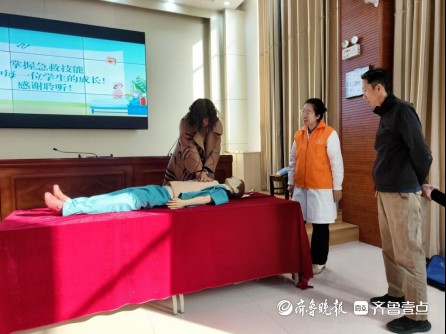 现场气氛热烈,教师们踊跃参与,在医师“一对一”指导下反复练习,力求动作规范到位。
