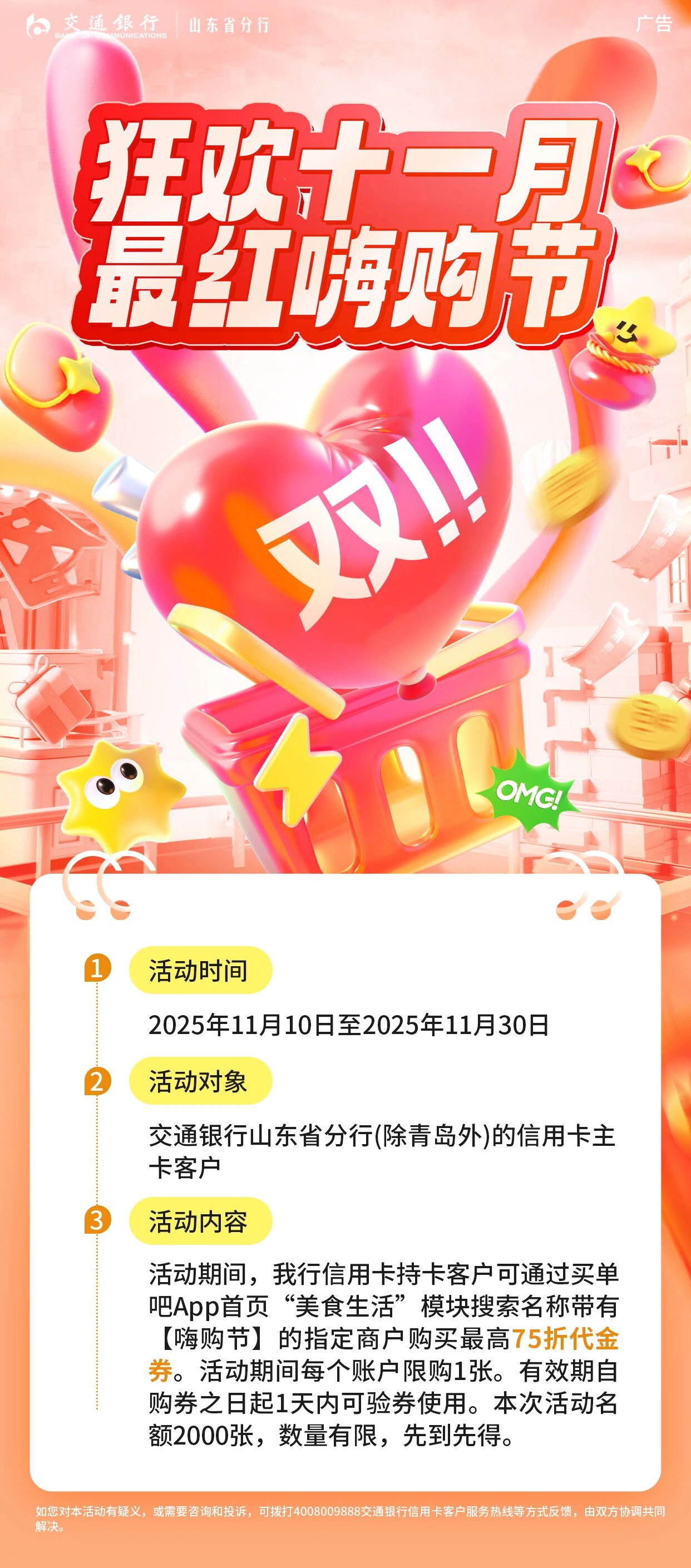 福利:买单吧“美食生活”-代金券搜【嗨购节】,抢天天75折代金券,数量有限,先到先得!