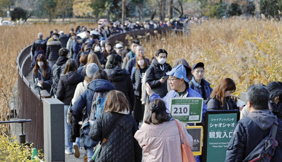 在日本社会经济低迷、灾害频发、老龄和少子化焦虑的状况下,大熊猫已经成了很多日本民众的精神寄托。连日来,大量熊猫粉丝从日本各地赶到上野动物园,排起长队与“晓晓”和“蕾蕾”告别,日本也将自1972年以来首次面临国内没有大熊猫的局面。