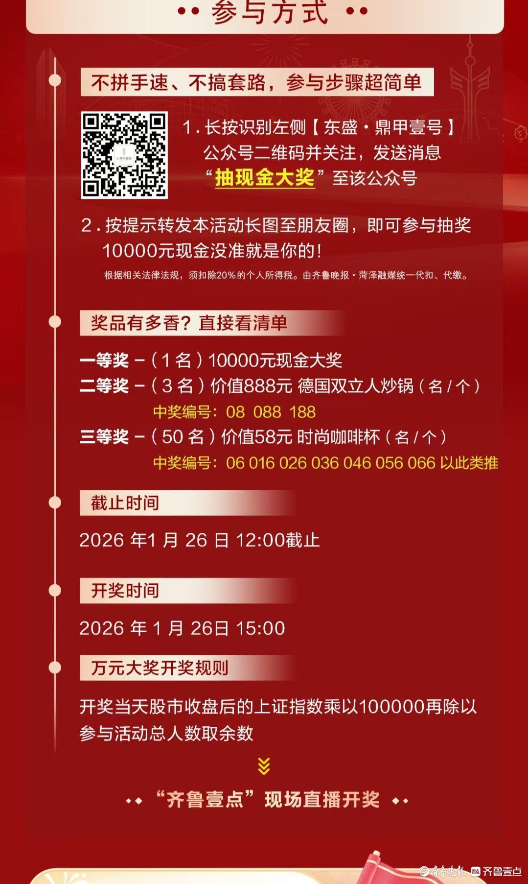 方式二:关注「东盛·鼎甲壹号」微信公众号,在后台回复关键词「抽现金大奖」,瞬间就能解锁抽奖资格,就像按下了财富按钮,万元现金和丰厚好礼立马向你招手!