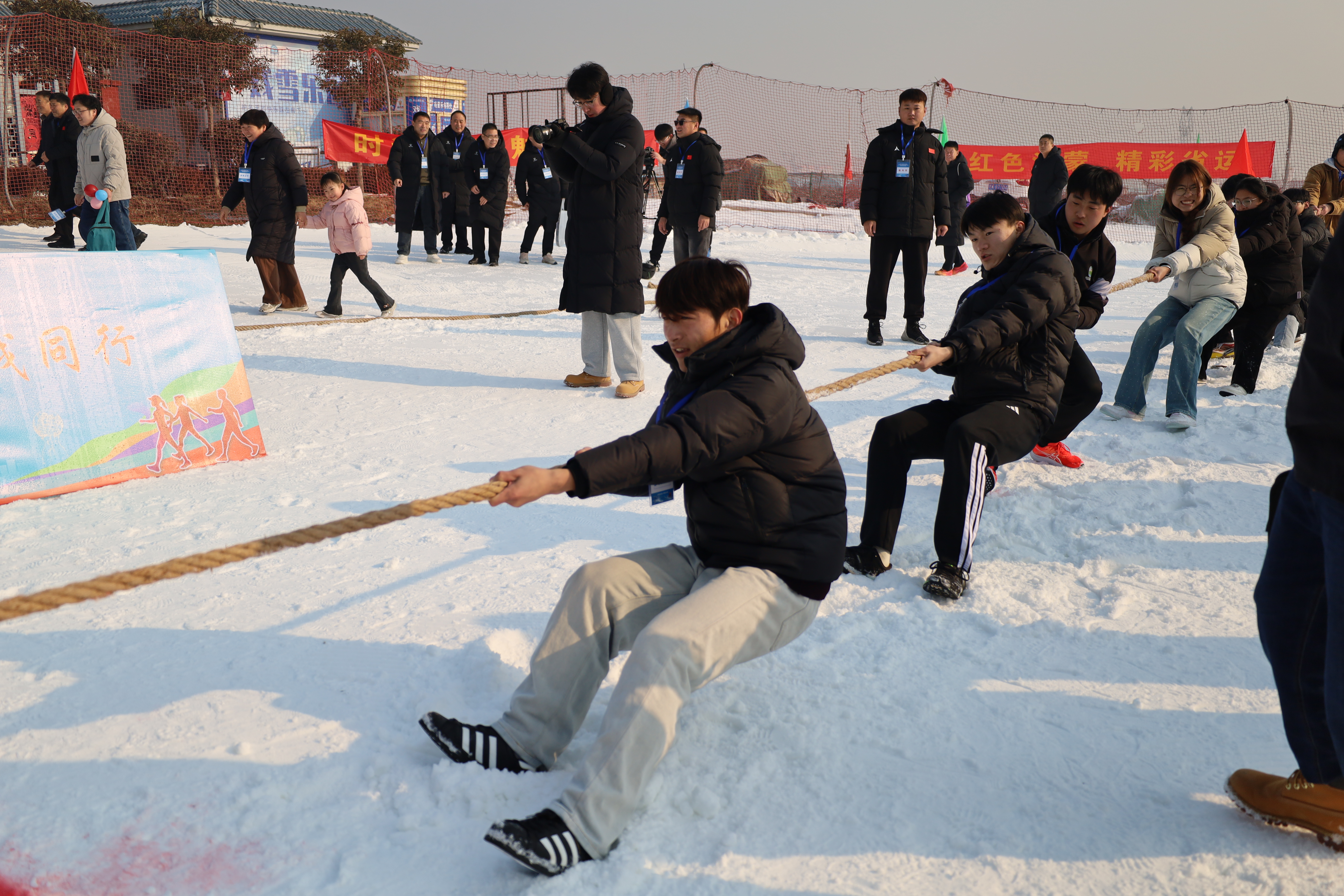 赛事设置雪上拔河、雪地赛龙舟、雪地托球障碍跑、轮滑冰球、短道速滑、单板滑雪、双板滑雪、冰壶等多个特色项目,兼顾趣味性与竞技性。滑雪赛道上,选手们俯身疾驰、身姿矫健,雪板划过雪地溅起漫天雪沫,如银龙穿梭般灵动;雪地拔河现场,队员们紧握绳索、脚蹬雪地,助威口号震天动地,时而僵持对峙、时而奋力冲刺,摔倒的欢笑声与胜利的呐喊声交织回荡,每一处场景都尽显冰雪运动的独特魅力,让参赛者在速度与协作中尽享运动快乐。
