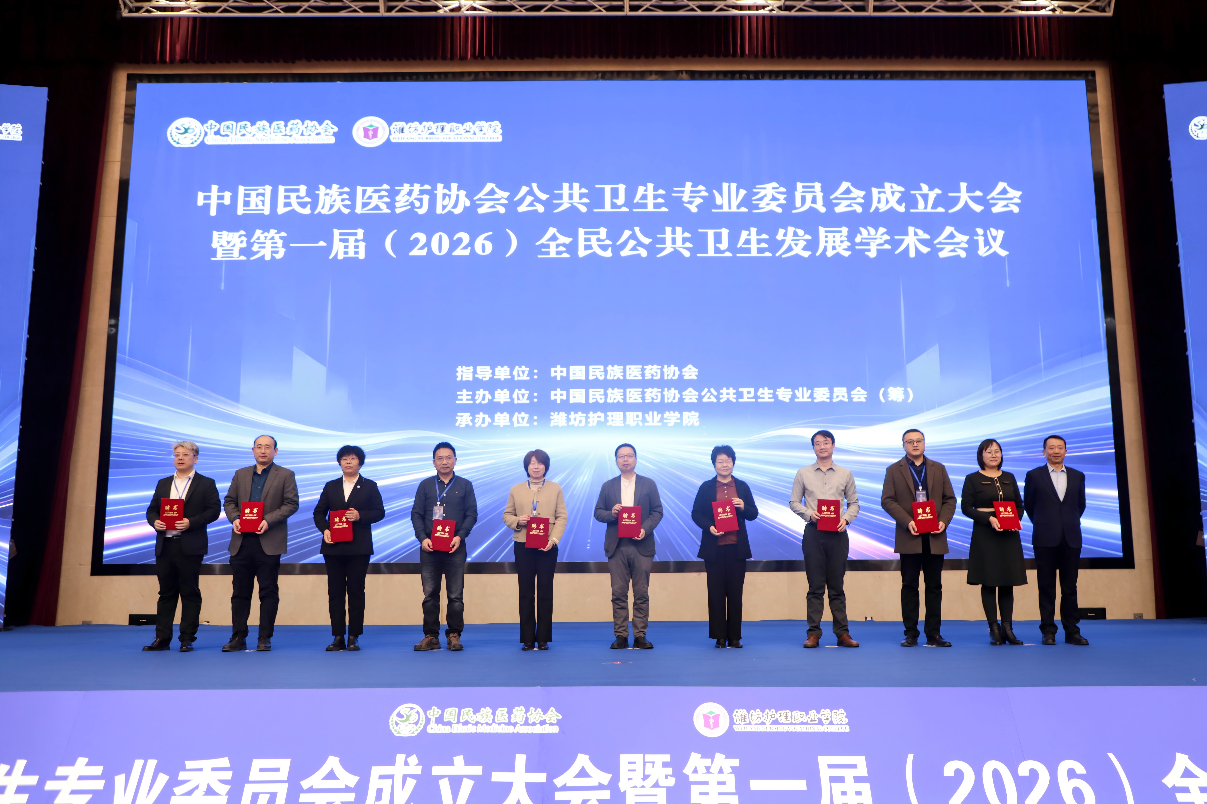 搭建协同发展新平台,书写卫生健康新篇章。1月24日,中国民族医药协会公共卫生专业委员会成立大会暨第一届(2026)全民公共卫生发展学术会议在潍坊护理职业学院成功举办。来自政府部门、医疗卫生机构、高等院校及相关单位的负责人,以及民族医药、公共卫生、预防医学等领域的顶尖专家学者、行业精英齐聚一堂,共话民族医药与公共卫生事业发展大计。