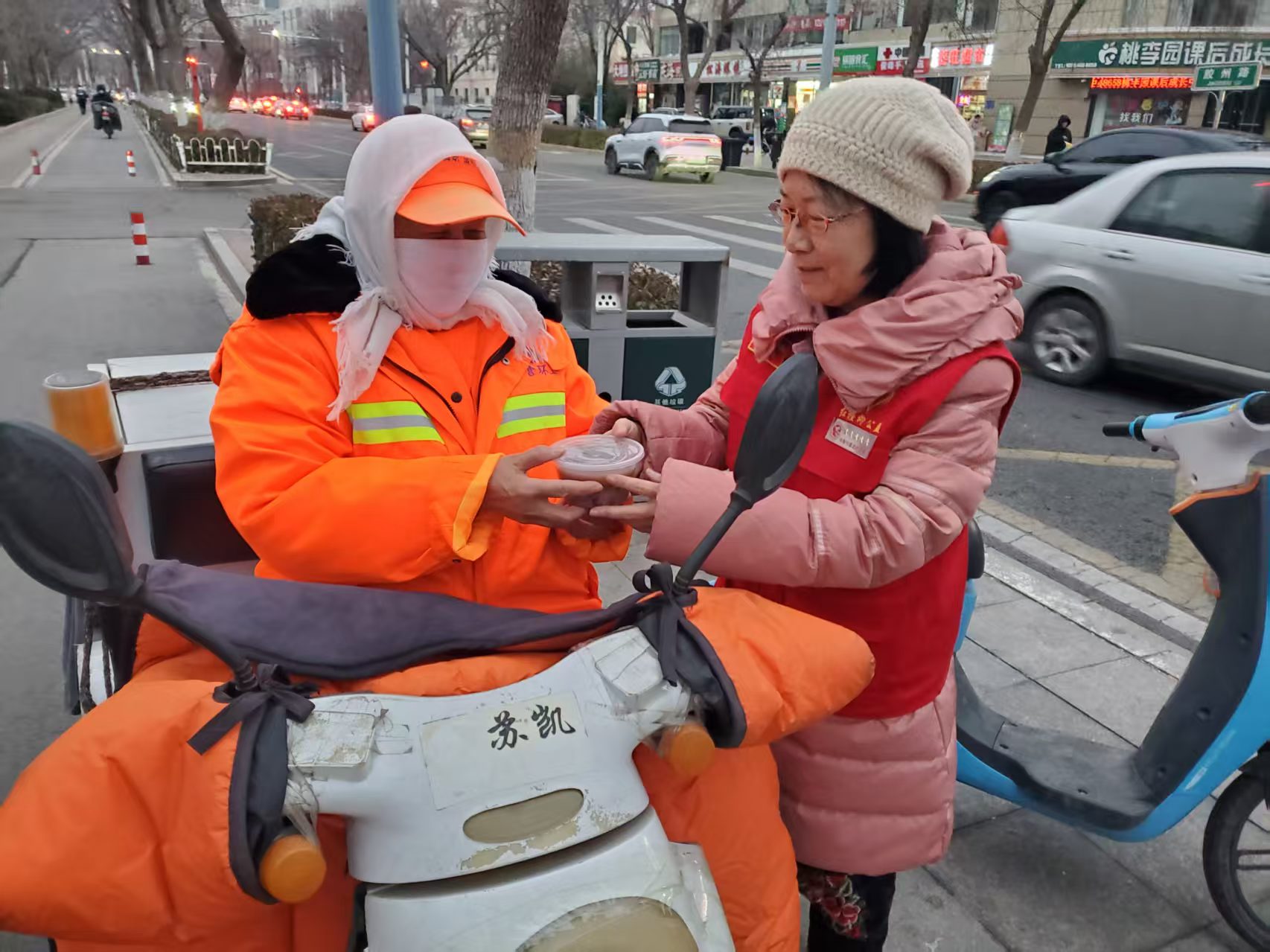 天光微熹,当第一批热粥被打包完毕时,志愿者们的身影已穿梭在清冷的街道上。他们将腊八粥送到一个个环卫工作点、快递驿站。“太感谢你们了!没想到腊八的这碗粥是你们送给我的。”一位环卫工人捧着粥碗,热气模糊了镜片,笑意却直达眼底。这场凌晨的奔赴与清晨的送达,是献给户外劳动者们一份专属的、充满敬意的“早安温暖”。