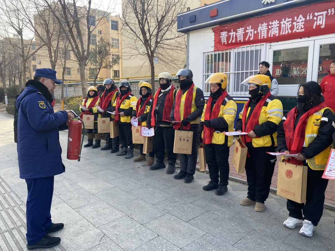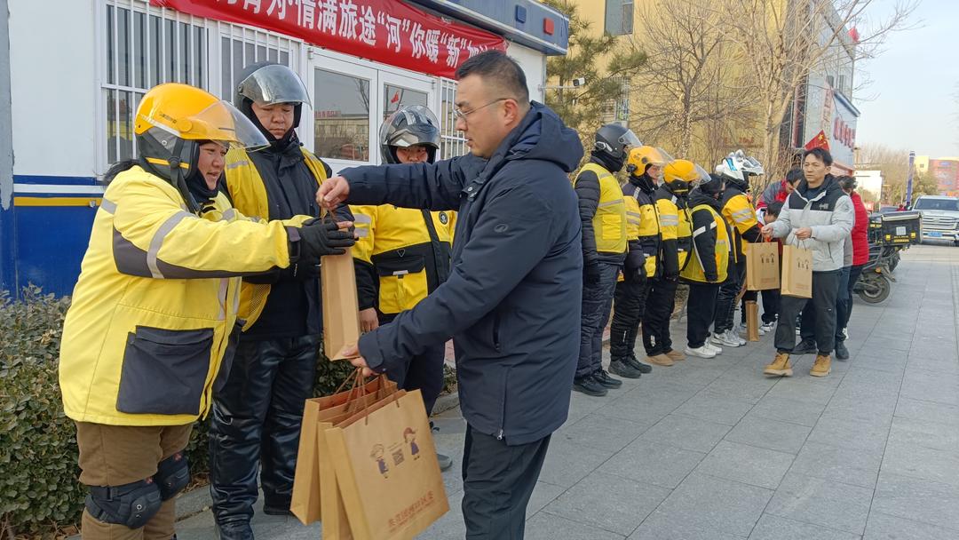 团区委、区志愿服务联合会及区青年志愿者协会共同打造“青力青为·情满旅途‘河’你暖‘新’加油站”志愿服务项目。依托城管驿站设立常态化暖“新”站点,寒假期间供应姜汤,并面向网约配送员发放腊八粥、保温杯、围巾等暖心礼包。同时组织开展消防安全培训,鼓励配送员发挥“移动探头”作用,助力社区安全治理。
