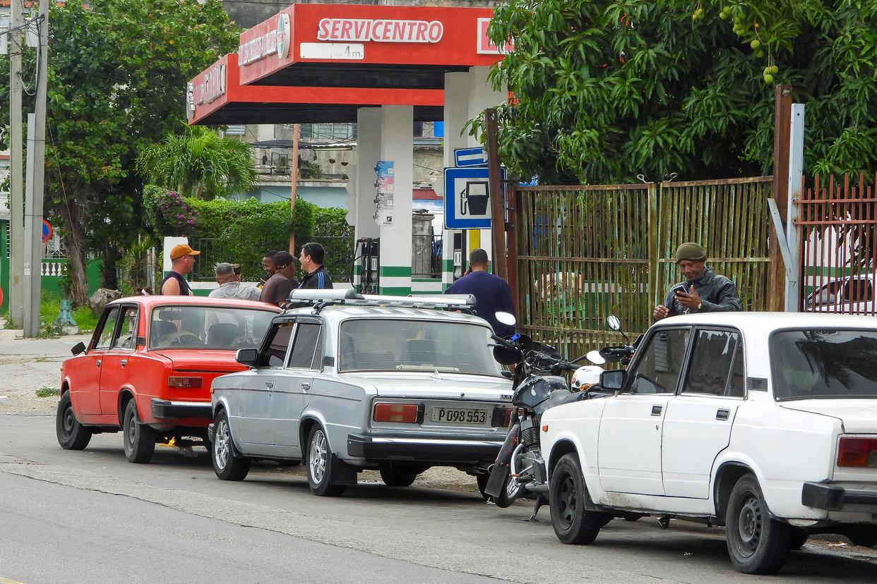 1月30日,在古巴首都哈瓦那,人们在一处加油站外排队等待。新华社