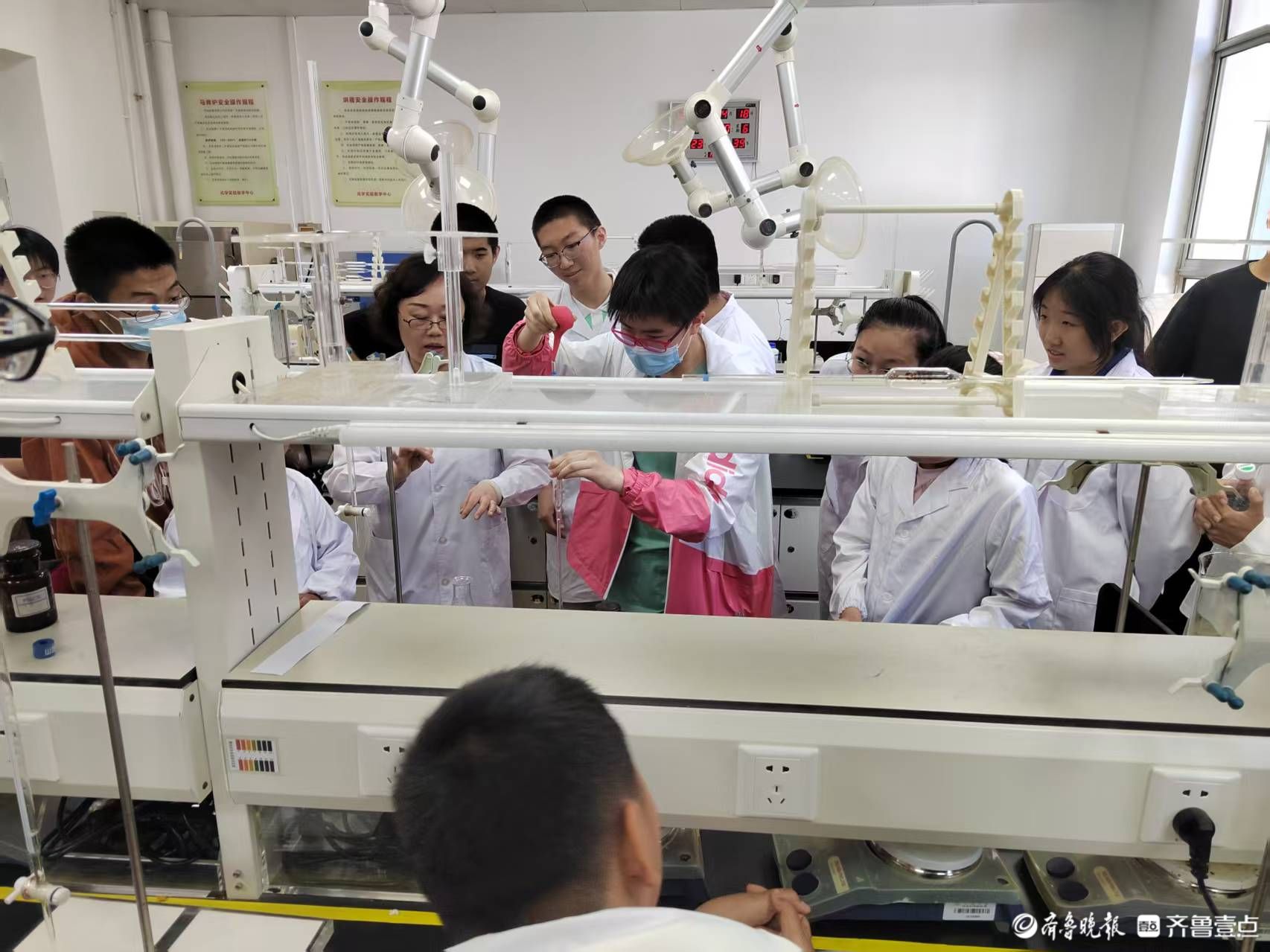 山师附中一位学生家长陆琳琳在陪女儿梁奕诺参观化学实验室后写道:“小家伙一头扎进实验室,眼睛亮晶晶地分享所见所闻。原来书本上的知识落到实际上是这么回事儿!”