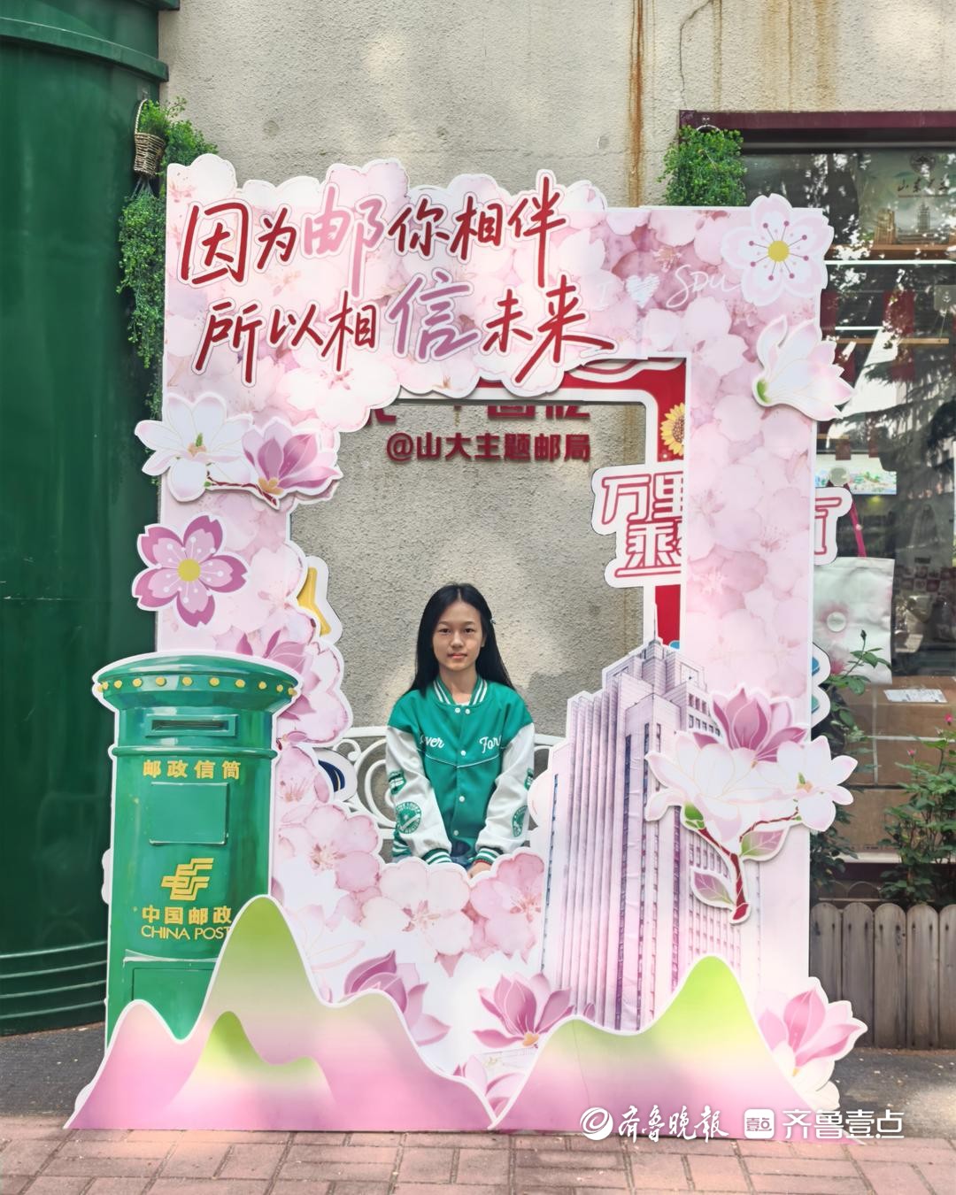 山师附中高二学生孔祥亮在展板前打卡留念 图源受访者