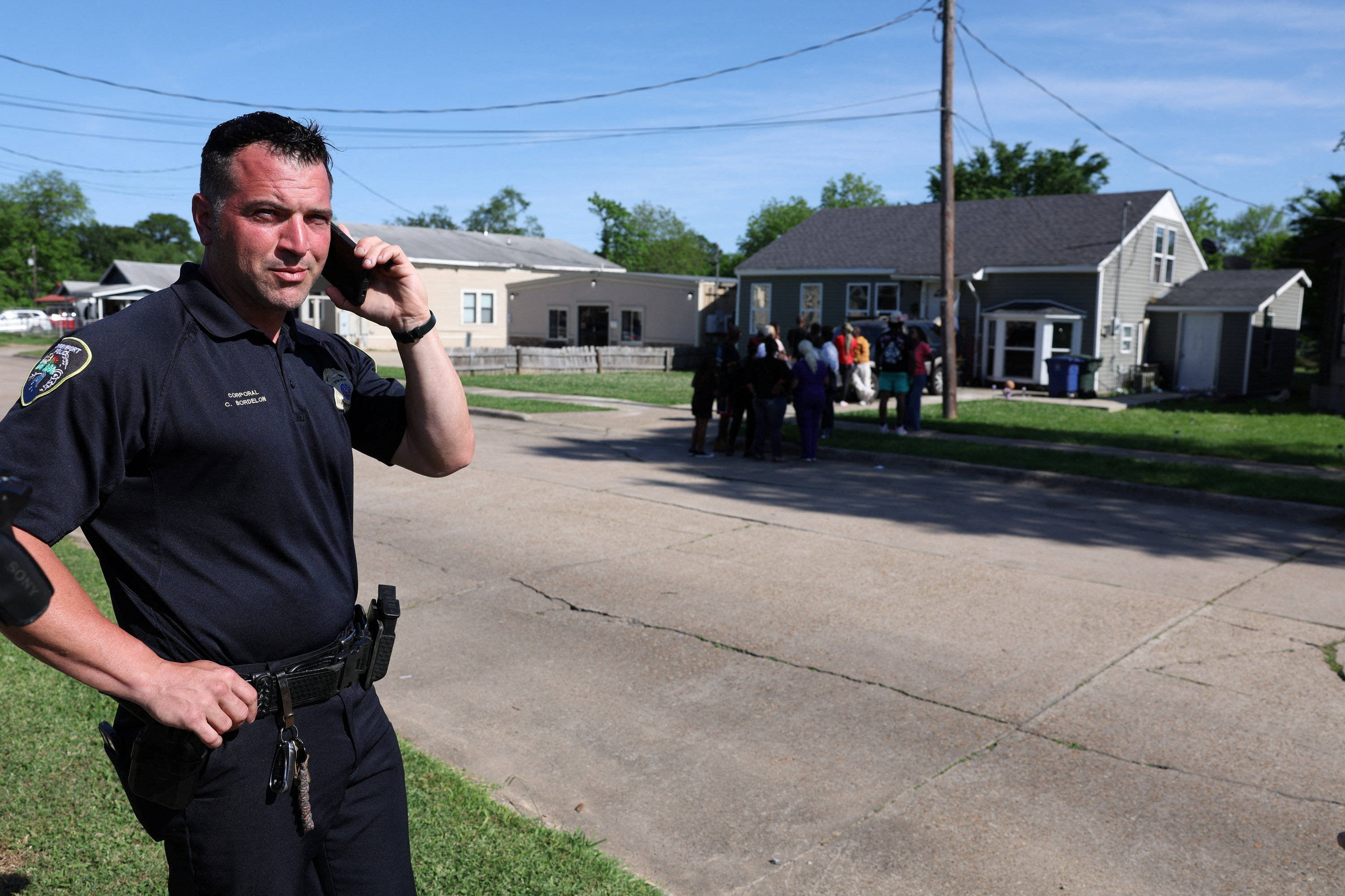4月19日,在美国路易斯安那州什里夫波特市,警察在枪击事件现场附近工作。 新华社/路透