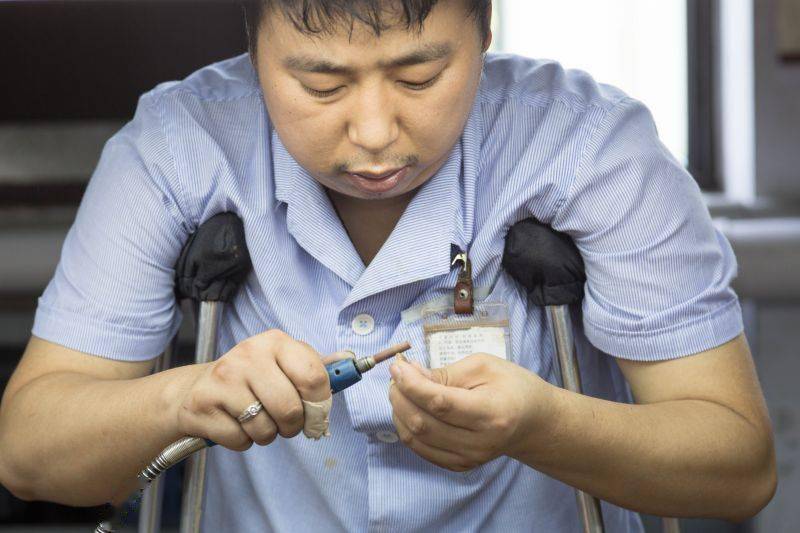 谭木匠工厂残疾员工在打磨产品