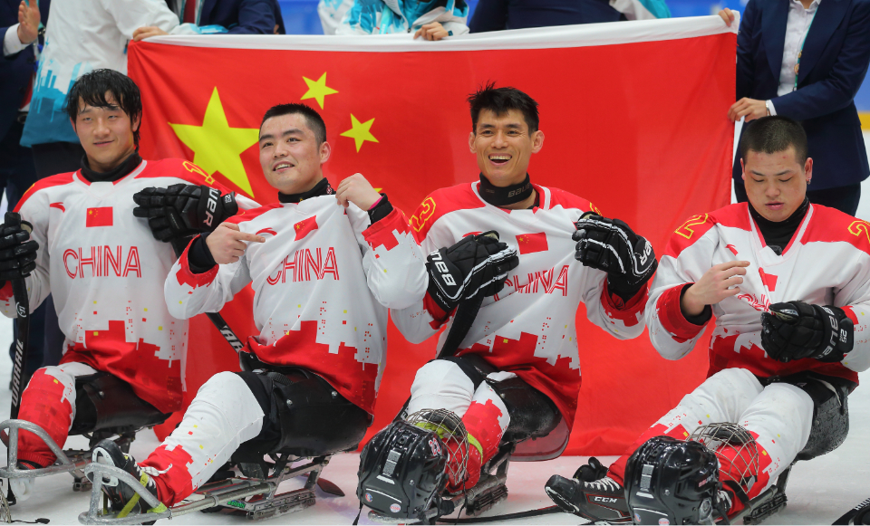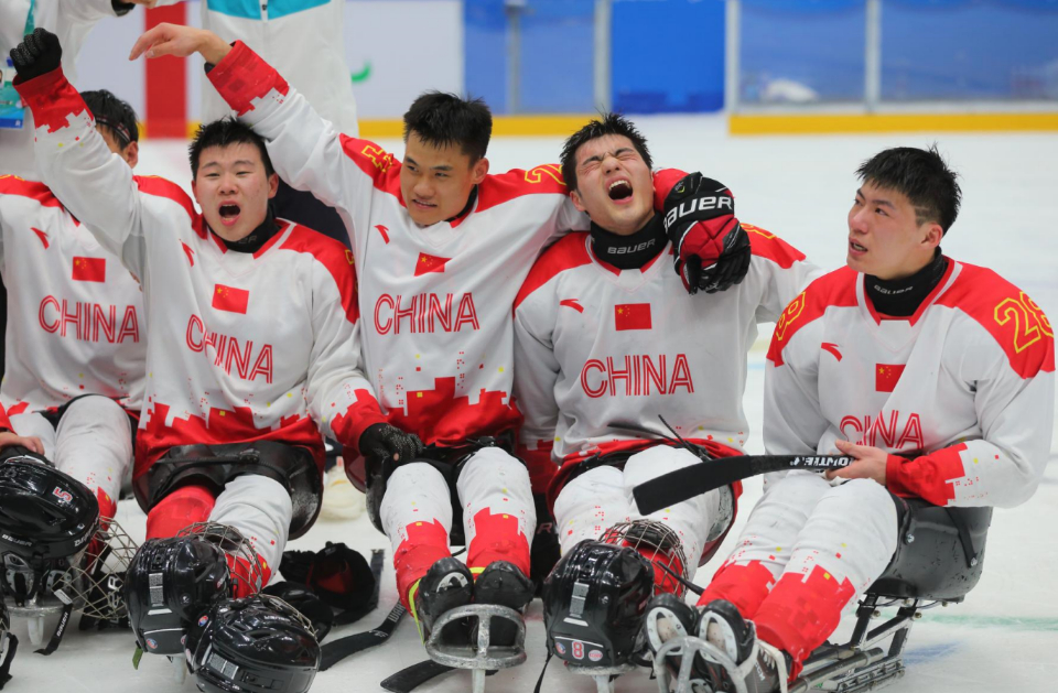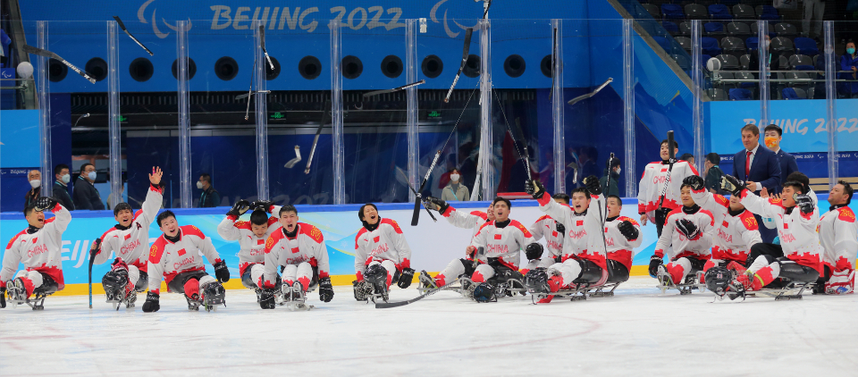 3月12日,在北京国家体育馆举行的北京2022冬残奥会残奥冰球铜牌赛中,中国队以4比0战胜韩国队获得铜牌。