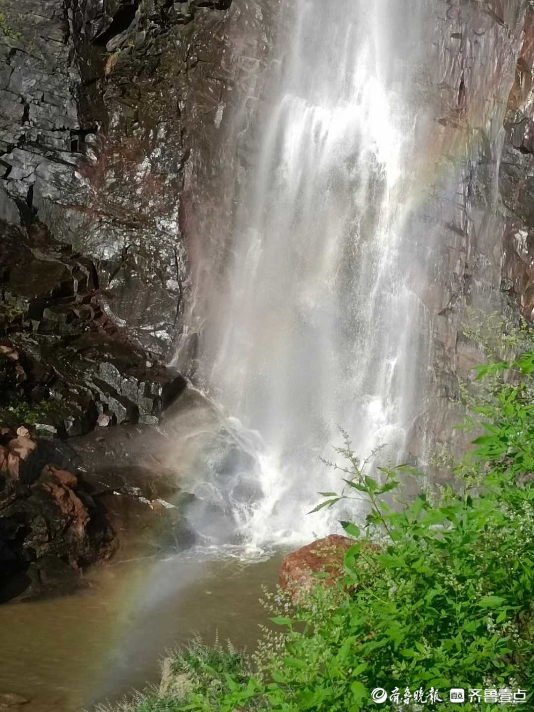 6日,当地刚刚下了雨,不少河道都是水流奔涌,有了雨水的补充,沂山的百丈崖瀑布也更有了生气。