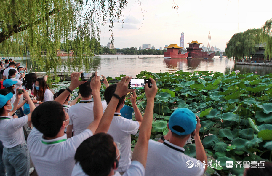 荷风送香气,竹露滴清响。大明湖边荷香阵阵,沿湖散步、夜跑成为济南人的生活日常。