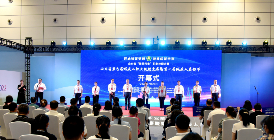 7月29日上午,山东省“技能兴鲁”职业技能大赛——山东省第七届残疾人职业技能竞赛暨第一届残疾人展能节在济南拉开帷幕。中国残联就业服务指导中心主任赖伟出席开幕式并讲话,省残联党组书记、理事长邹斌芳宣布开幕,省直有关部门和济南市有关负责同志、全省17支参赛代表队以及裁判员、志愿者、工作人员等1200余人参加。