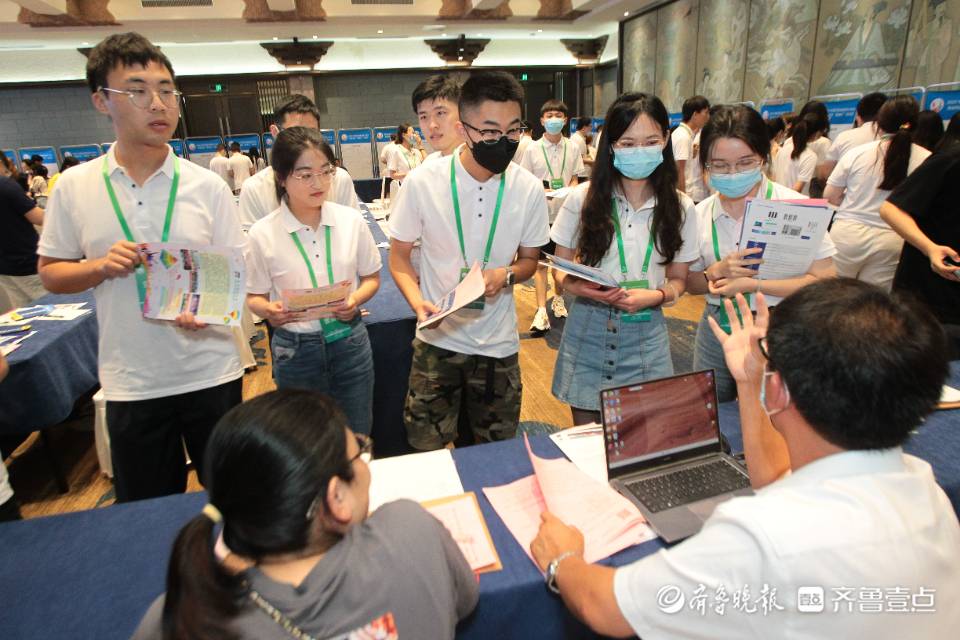7月30日下午,2022年黄河流域优秀大学生就业创业“泉城行”训练营“双选会”现场,50余家企业HR与学子们面对面交流。长安大学控制科学与工程硕士郜周琪特意提前打印好了简历,现场向齐鲁银行总行相关负责人递交了简历。