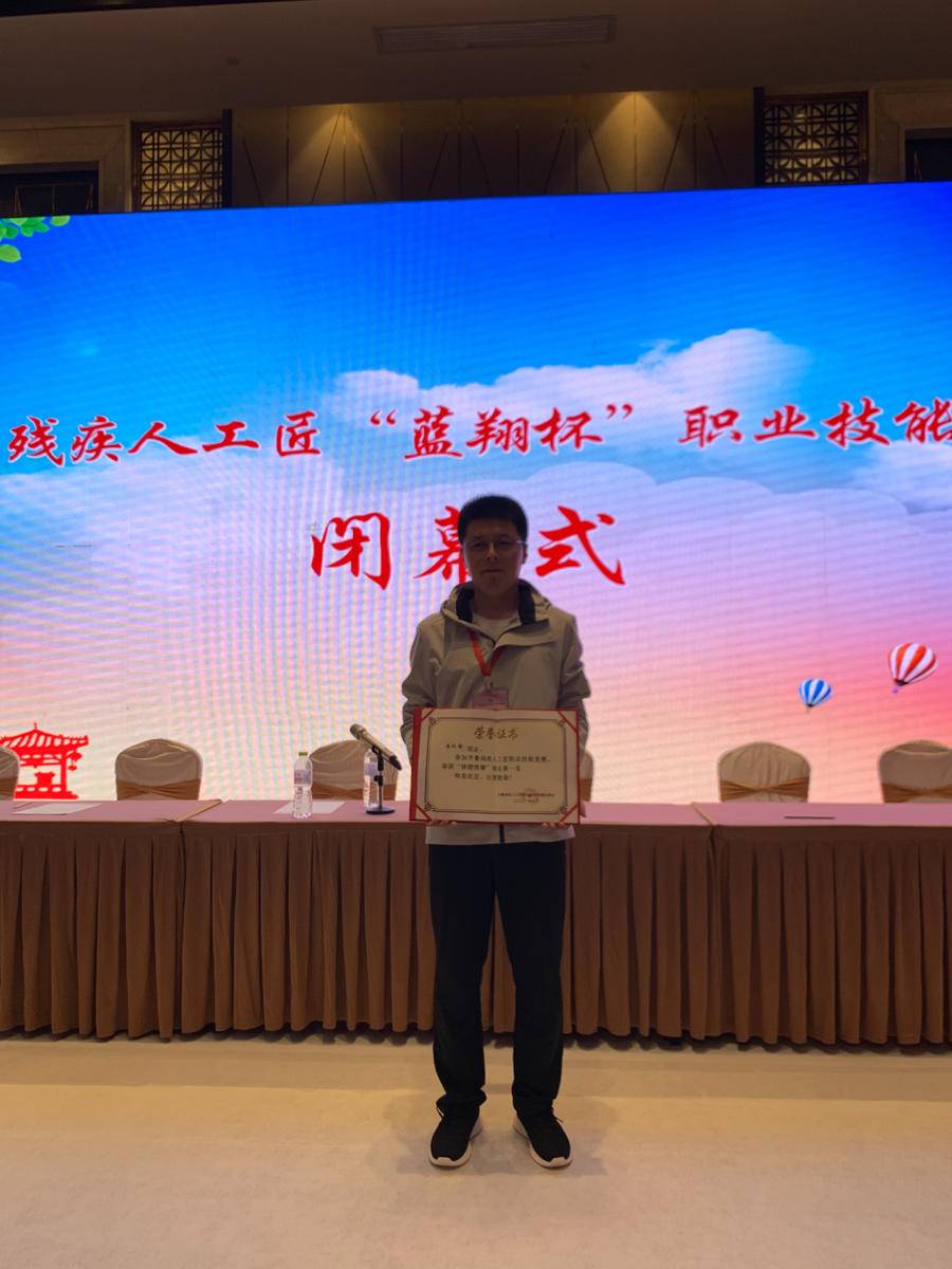 7月30日上午,在山东省第七届残疾人职业技能大赛闭营仪式上,山东省残联党组书记、理事长邹斌芳宣布获奖名单,来自济南市按摩医院的李靖霖是盲人保健按摩项目的第二名。