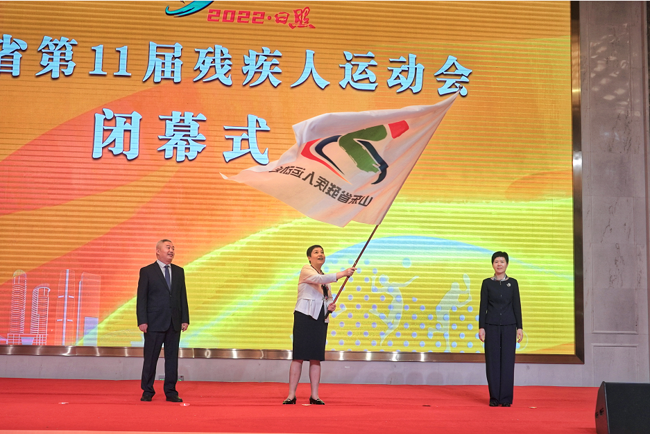 闭幕式还举行了省残运会会旗交接仪式,山东省第十二届残疾人运动会将于 2026 年在临沂市举办。